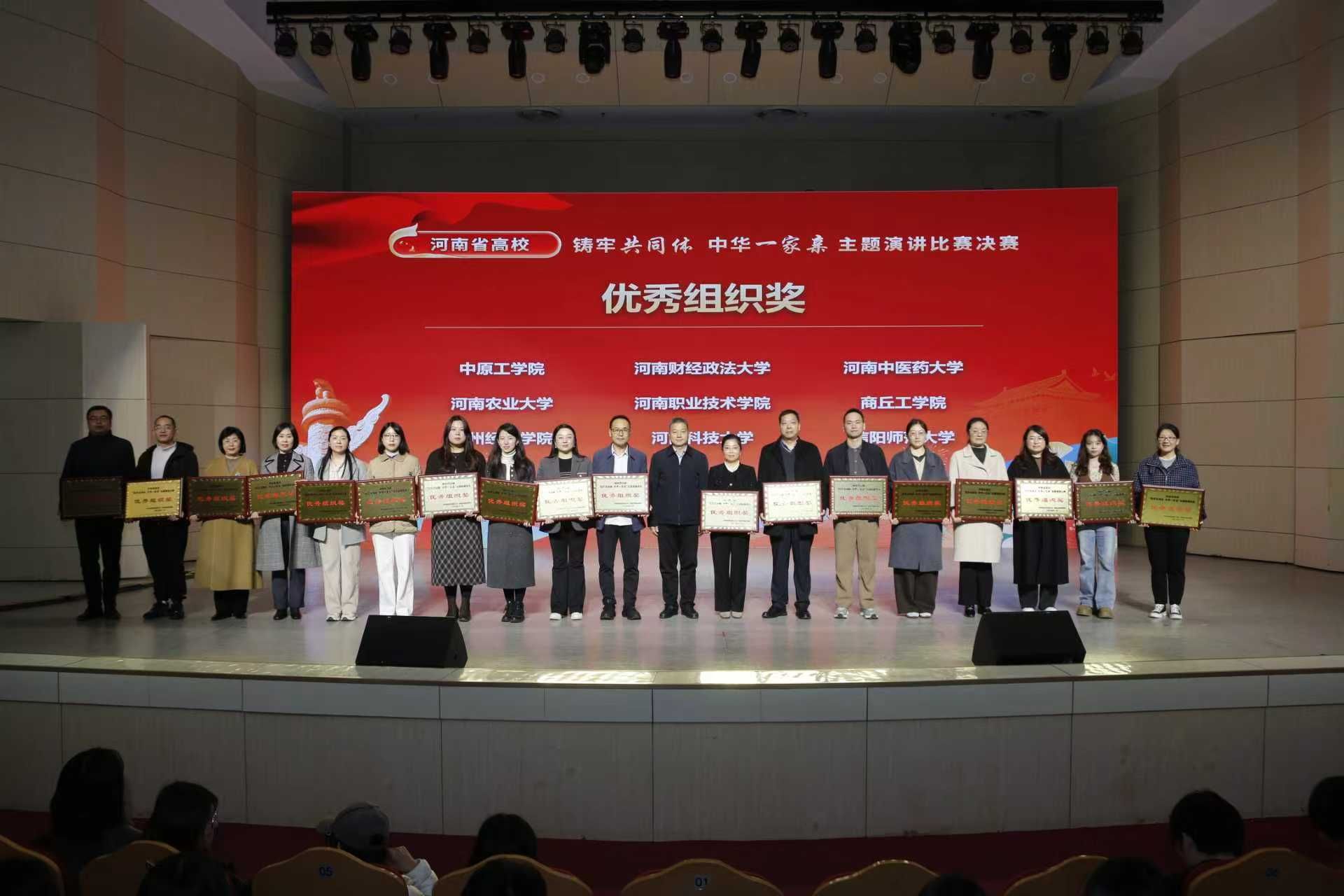 11月14日,由中共河南省委教育工委、省教育厅、省民族宗教委主办的全省高校“铸牢共同体 中华一家亲”主题演讲比赛决赛在河南师范大学举行。我校参赛选手左冰洁在此次比赛中荣获一等奖,我校荣获优秀组织奖。