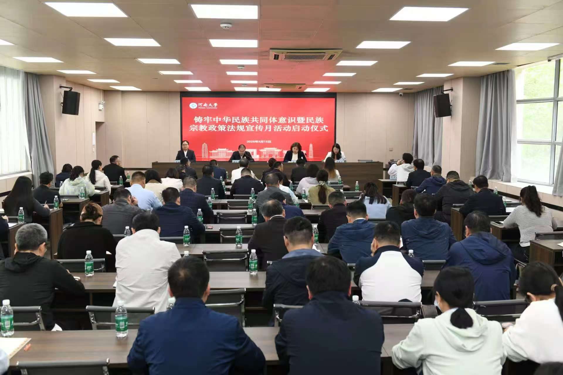 4月15日下午,我校铸牢中华民族共同体意识暨民族宗教政策法规宣传月活动启动仪式在金明校区软件学院举行。开封市委统战部副部长、市民族宗教事务局党组书记董高胜,校党委统战部部长王莹,软件学院党委书记常继科,各学院党委副书记、统战委员、统战联络员以及民主党派、无党派人士学生代表参加活动。仪式由校党委统战部副部长贾银兰主持。